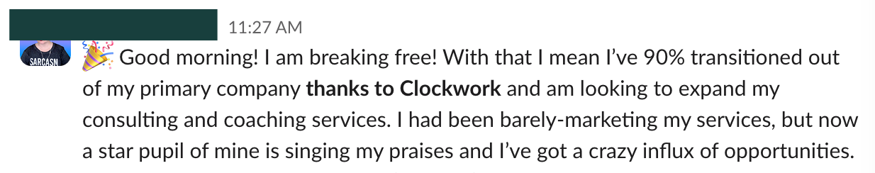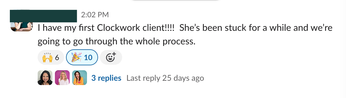 I’ll introduce you to our Clockwork Certified Partners™️ program and invite you to use our system as a shortcut to growing your coaching practice.
